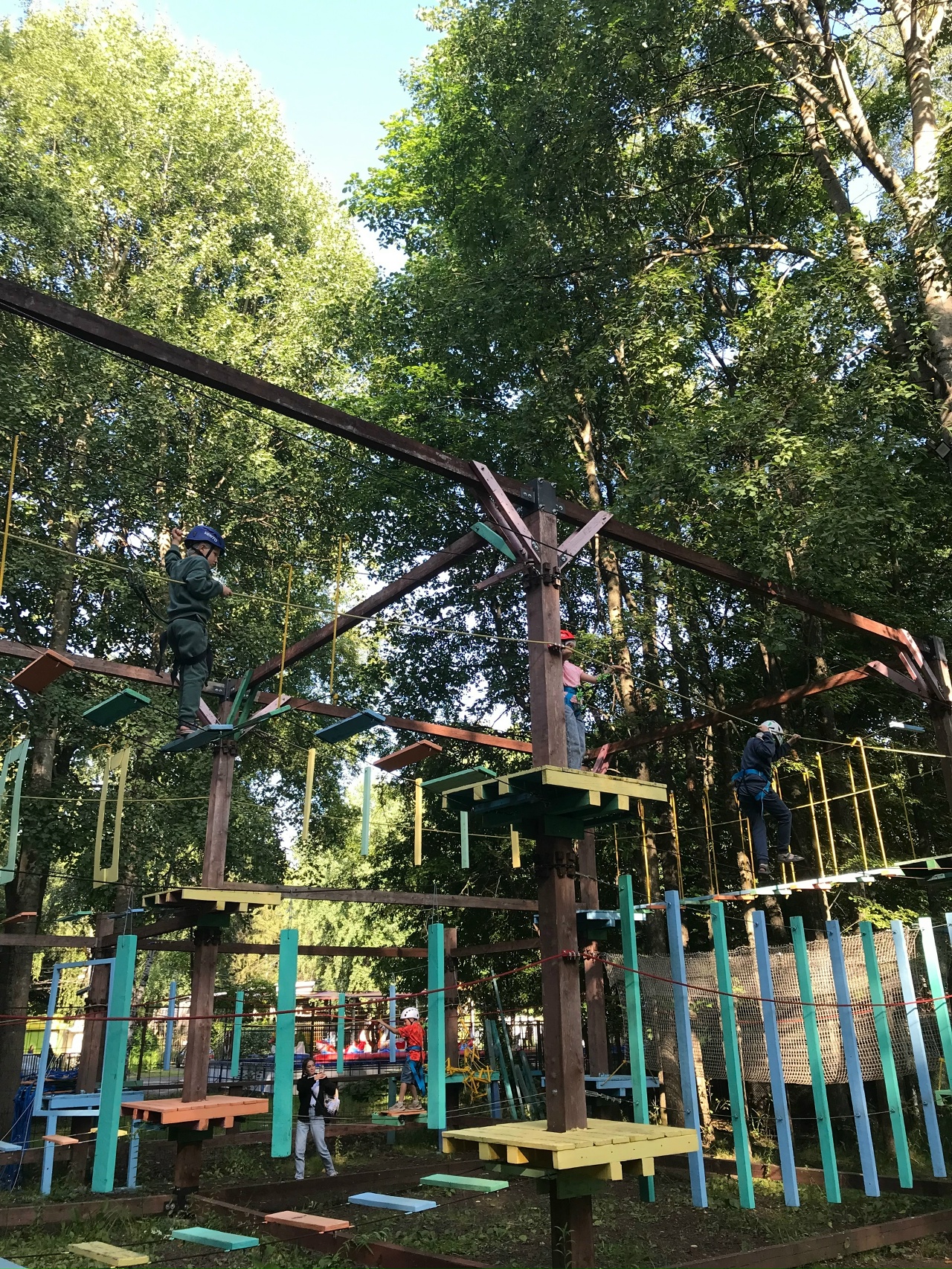 Два уровня тропы протяжённостью от 48 до 90 метров, на которых дети смогут испытать яркие и захватывающие эмоции! А 30-метровый троллей оставить самые не забываемые впечатления.